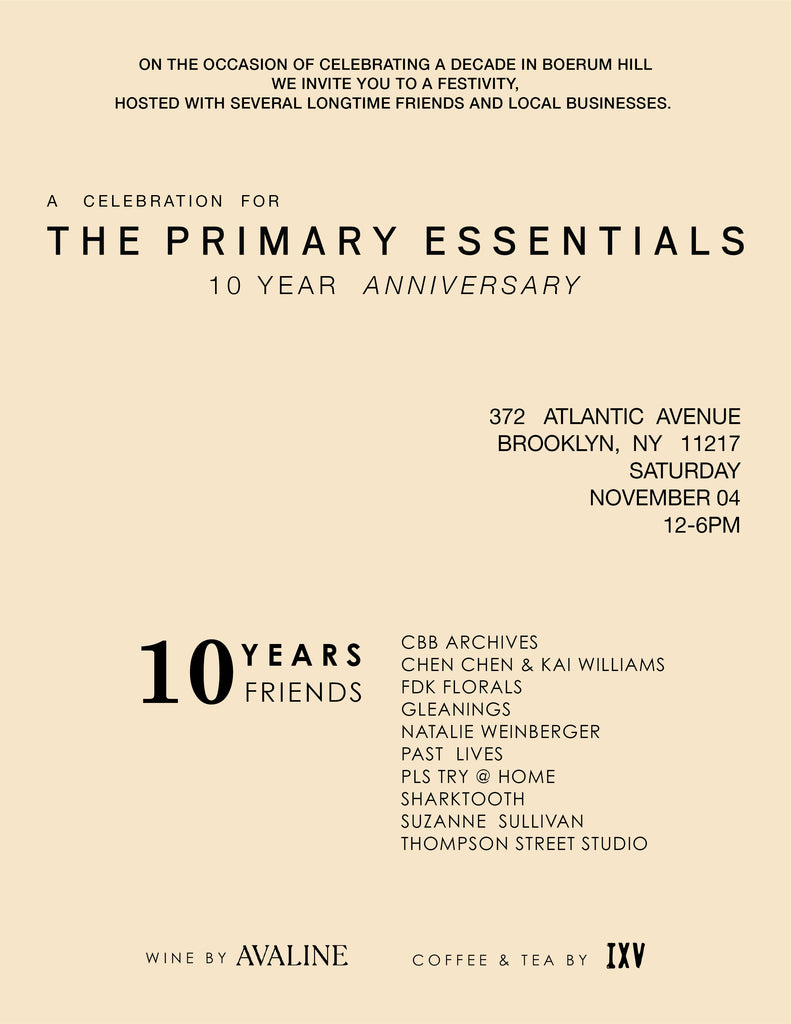 On the occasion of celebrating a decade in Boerum Hill, we invite you to a festivity, hosted with several longtime friends and local businesses.