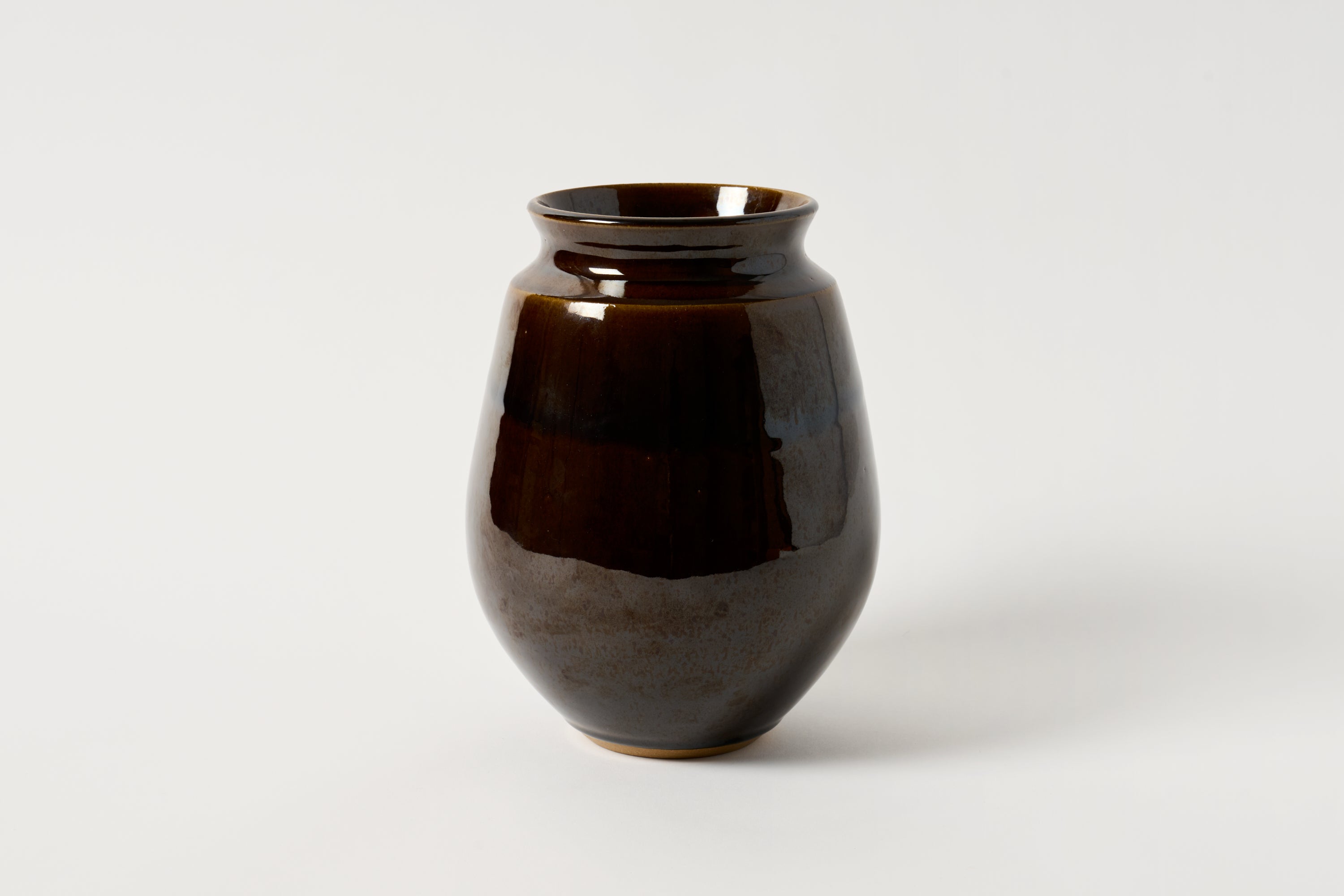 Handmade in California, this piece is a modern take on a classic, minimalist vessel. Offered in a rich, glossy brown glaze.