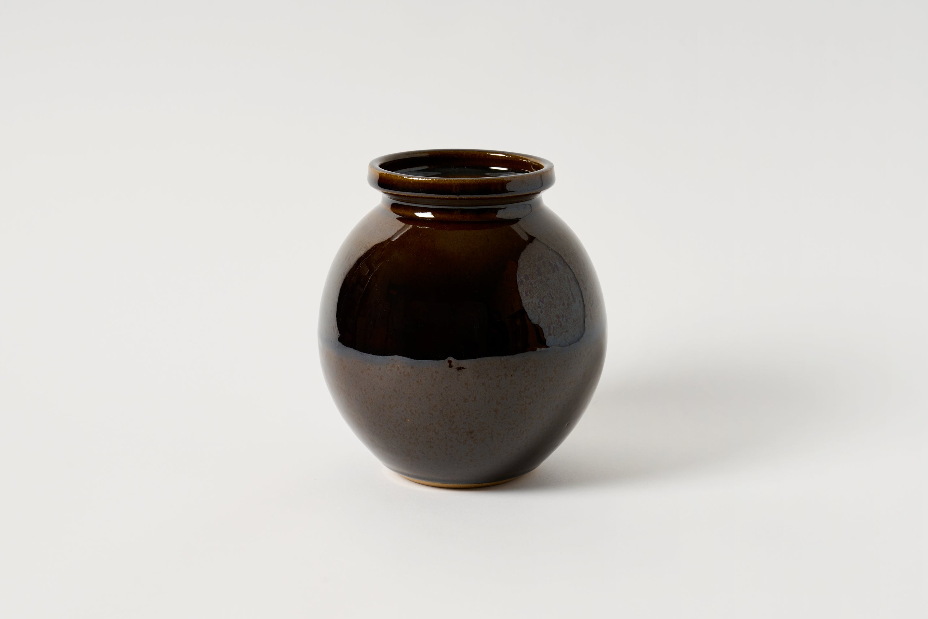 Handmade in California, this piece is a modern take on a classic, minimalist vessel. Offered in a rich, glossy brown glaze.