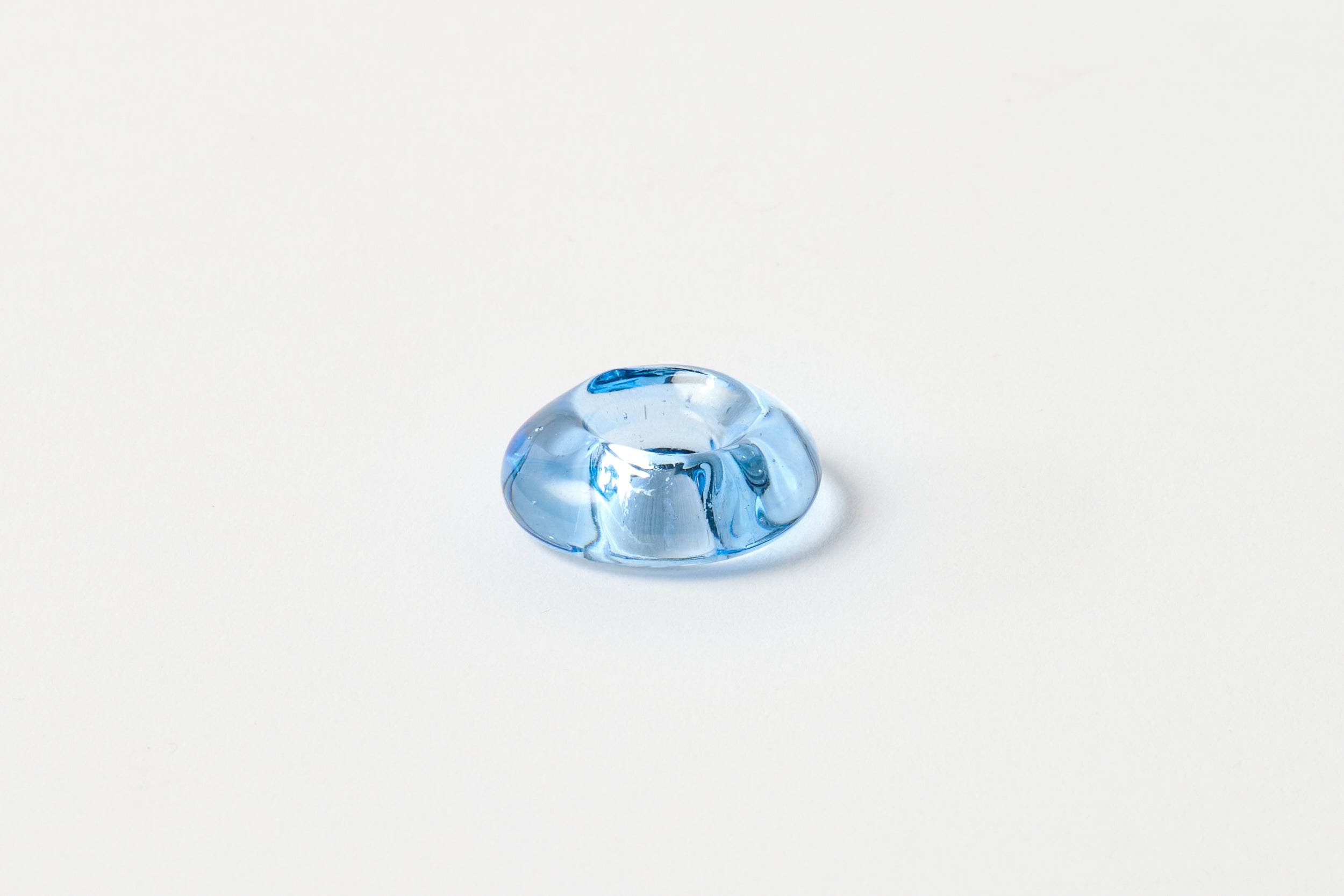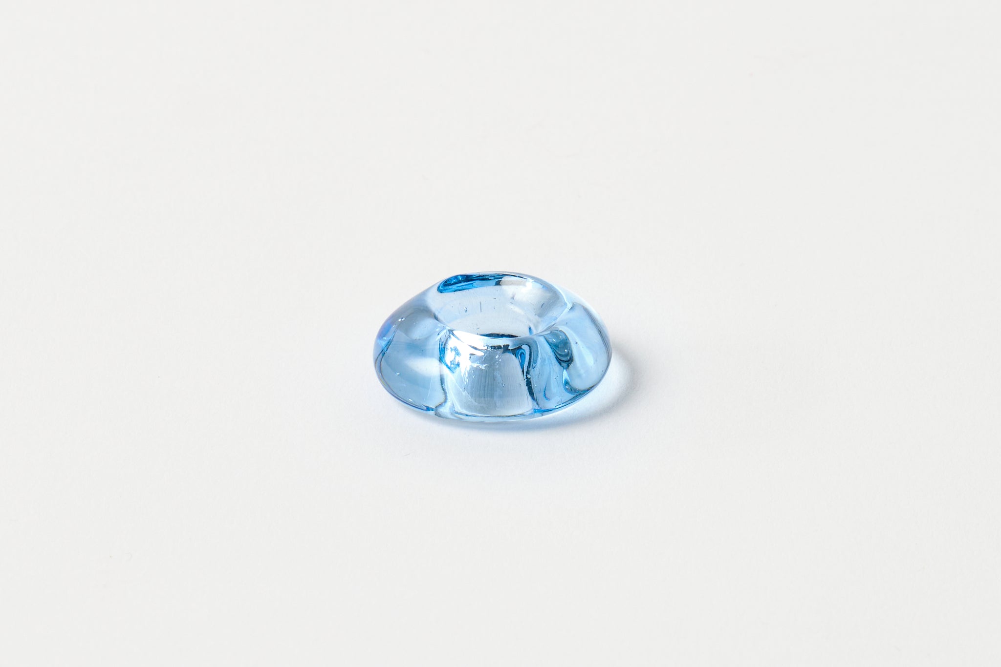 The Candle Ring Light Blue is inspired by the earth-toned stones and boulders we encountered during summer travels to Zion National Park. Use this minimalistic candle holder to add a unique display to your table or space without competing with other elements. The Candle Ring Light Blue is mouth-blown from recycled glass.