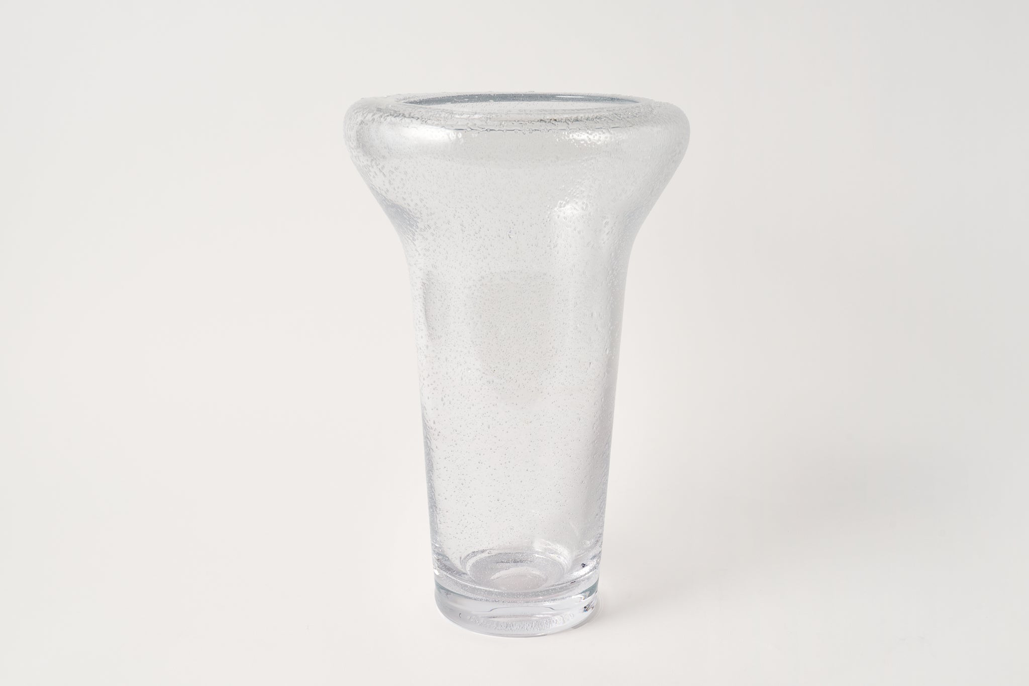 Mouthblown vase made from crystal glass in Poland with visible soda bubbles.