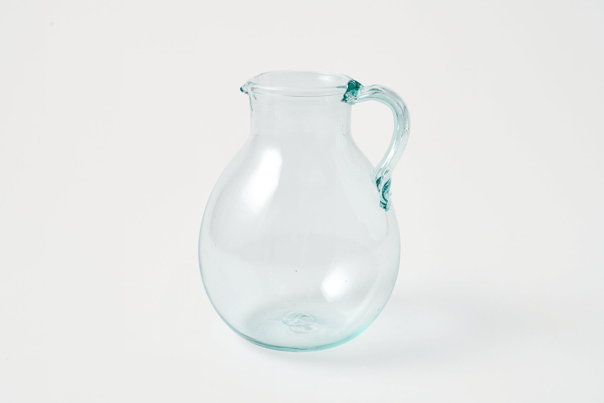Flagon Transparent isa stylish jug with a round belly and short, straight neck that’s as practical as it is charming. Inspired by the traditional flagon, a vessel once used for storing and pouring all kinds of beverages (from ale to water), the Flagon Transparent takes the best parts of history and gives it a modern twist. Its curved handle makes pouring a breeze, whether you’re serving wine, water, or your favorite beverage. Mouth-blown from 100% recycled glass by talented artisans.