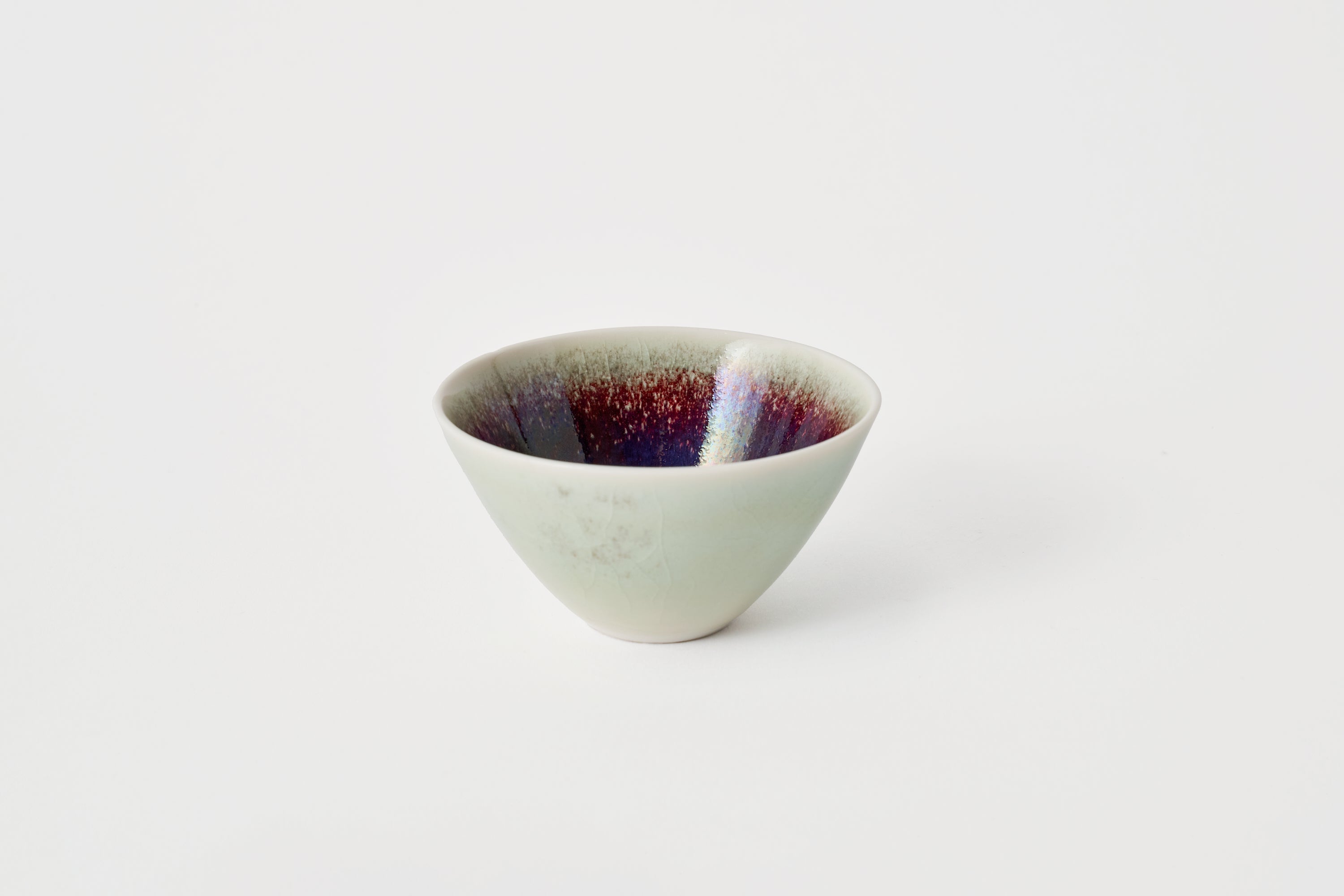 Pocelain bowl with glaze in violet and green shades by Rörstrand, one of the most famous Swedish porcelain manufacturers. Mid-20th century. Marked.