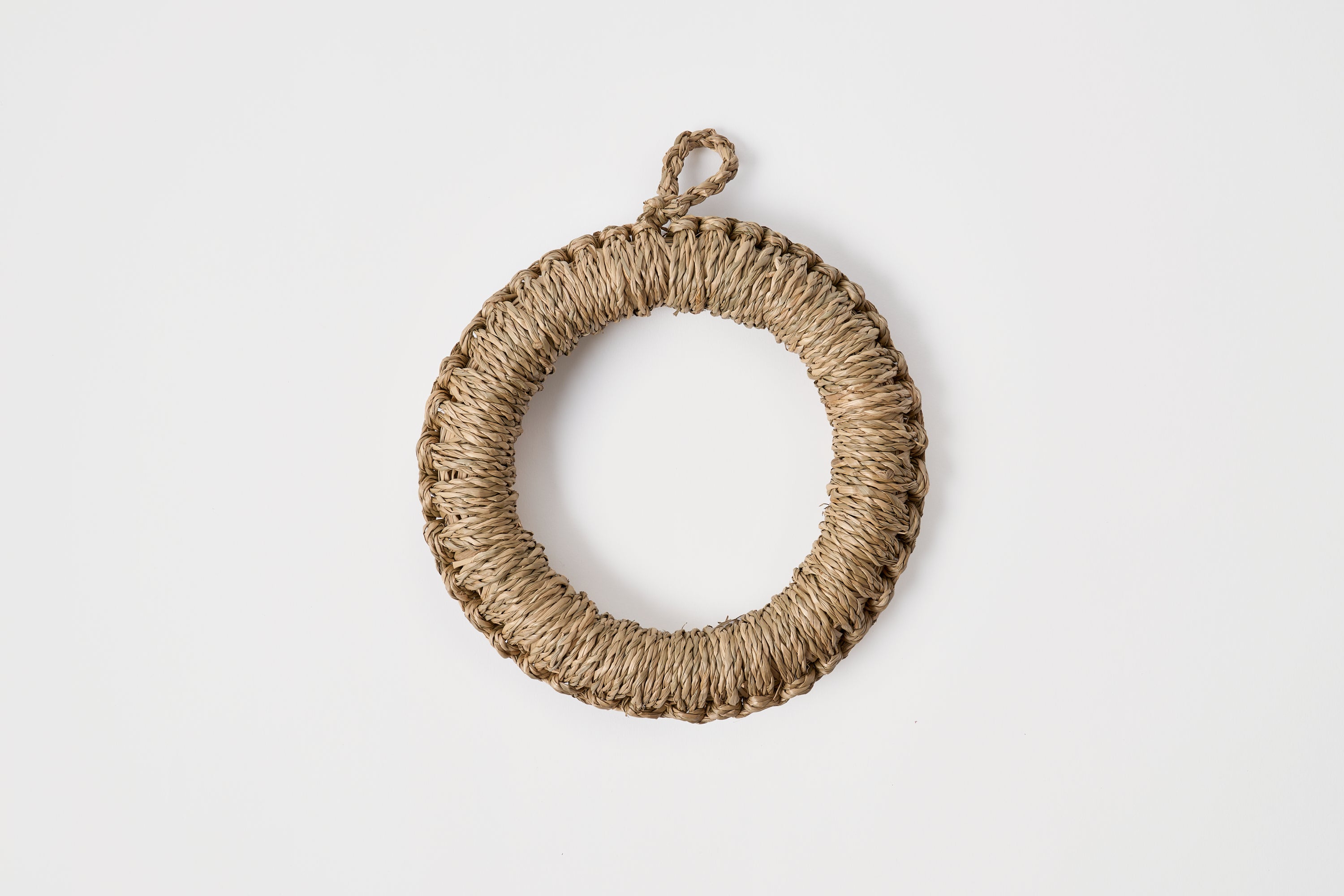 A lightweight small trivet woven artfully of soft Japanese rush- the same material used for traditional tatami.