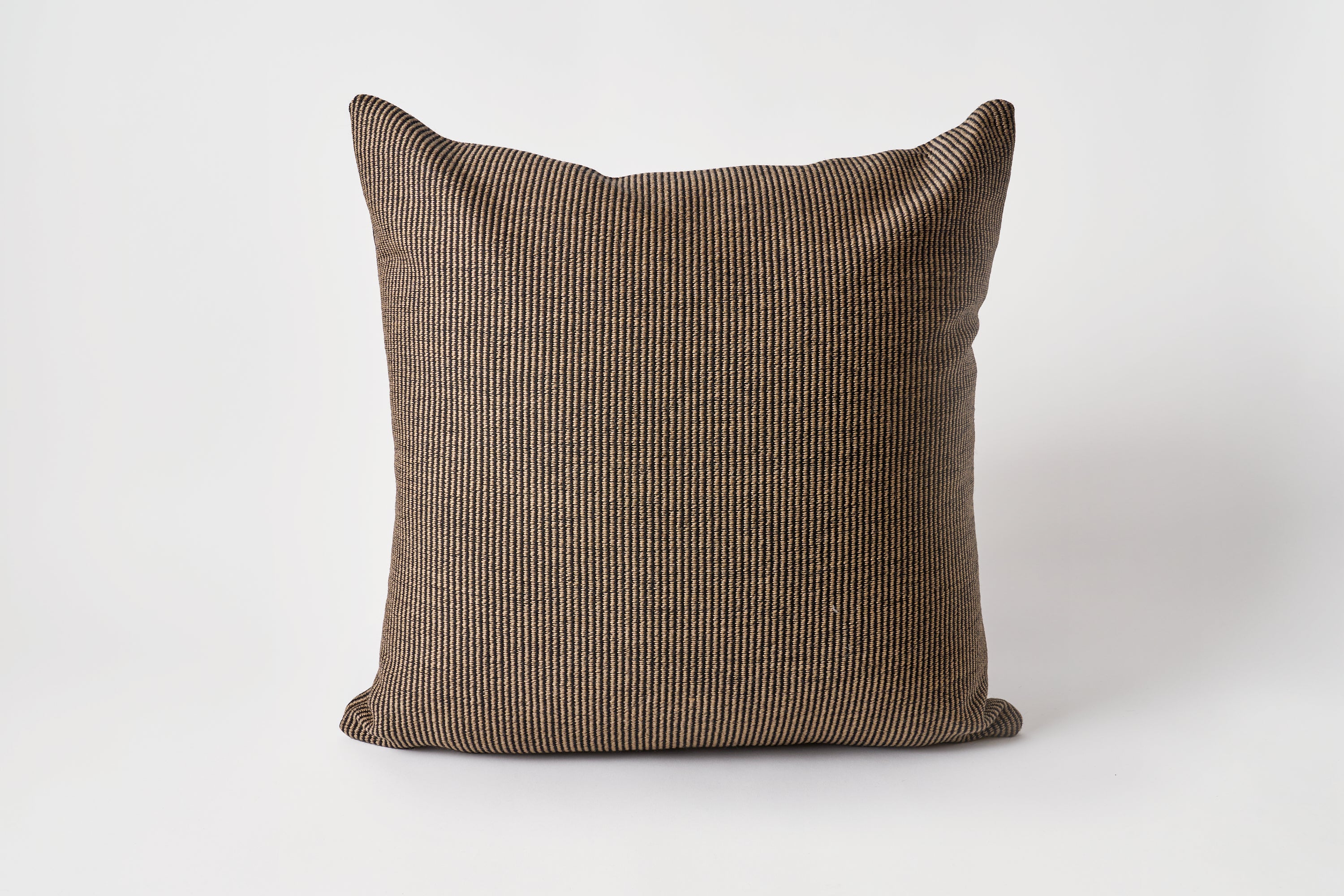 The densely woven wool and cotton blend of Fuse creates a close pattern of ribbed stripes in which the weave creates rows of stich-like patterning. Because the stripes of Fuse are fragmented rather than solid, the two colours in the textile meld, creating a subtle mid colour when seen across a larger surface.