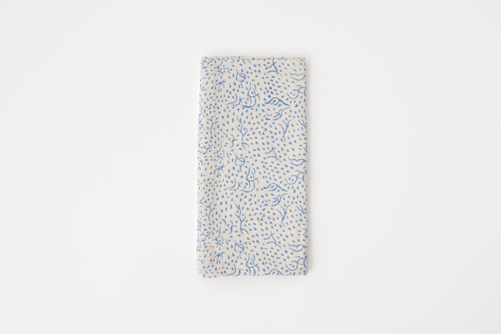 Block printed napkin on cotton/linen textile.