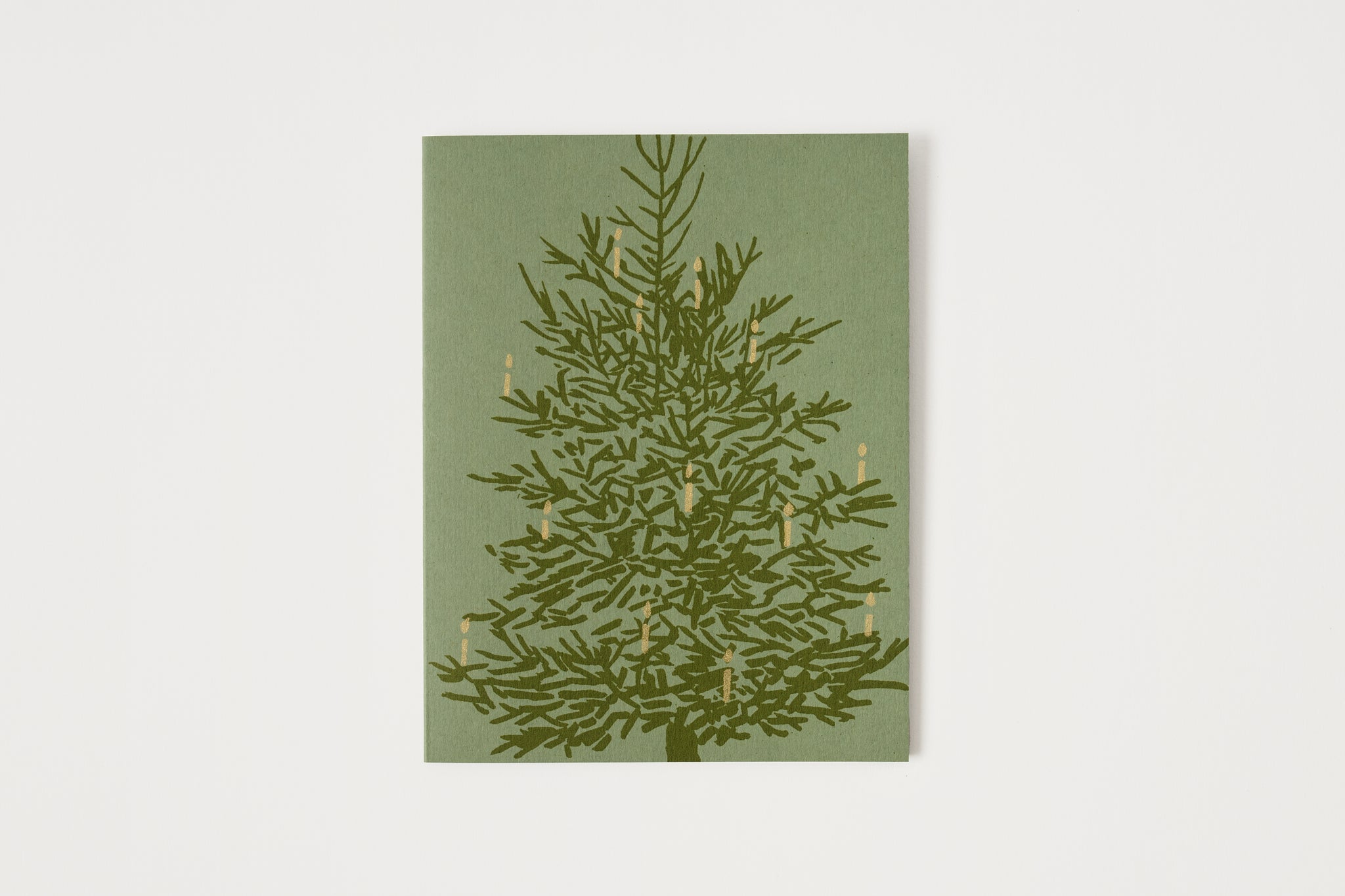 These cards are hand silk-screened with green and gold ink on 100# recycled Mid Green cover, and come with a white envelope. The inside is left blank for your own message.